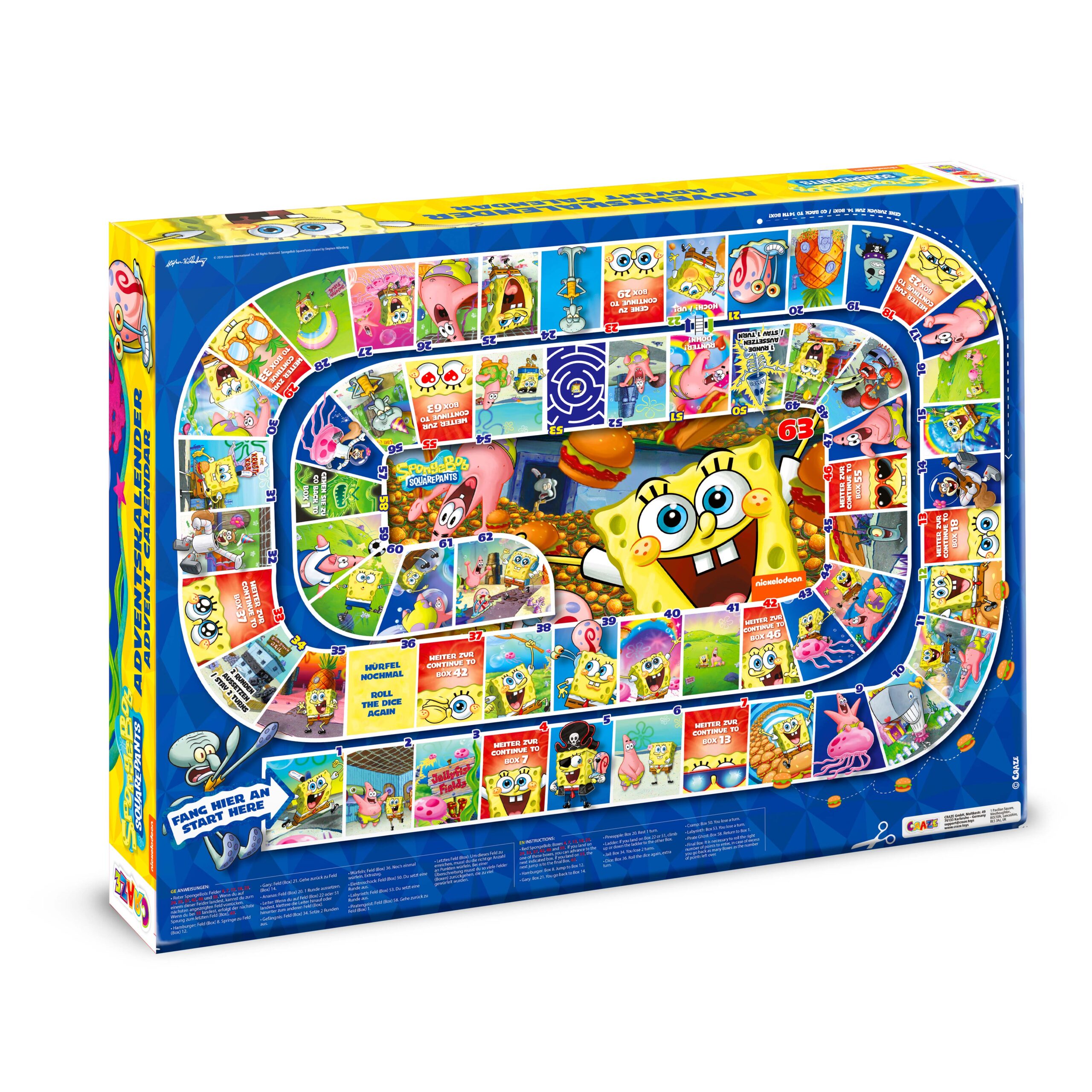 All contents of the SpongeBob Advent calendar undergo strict quality control and are tested according to European standards. Also included a removable parent information sheet on the back – parents can see directly what is included in the calendar.