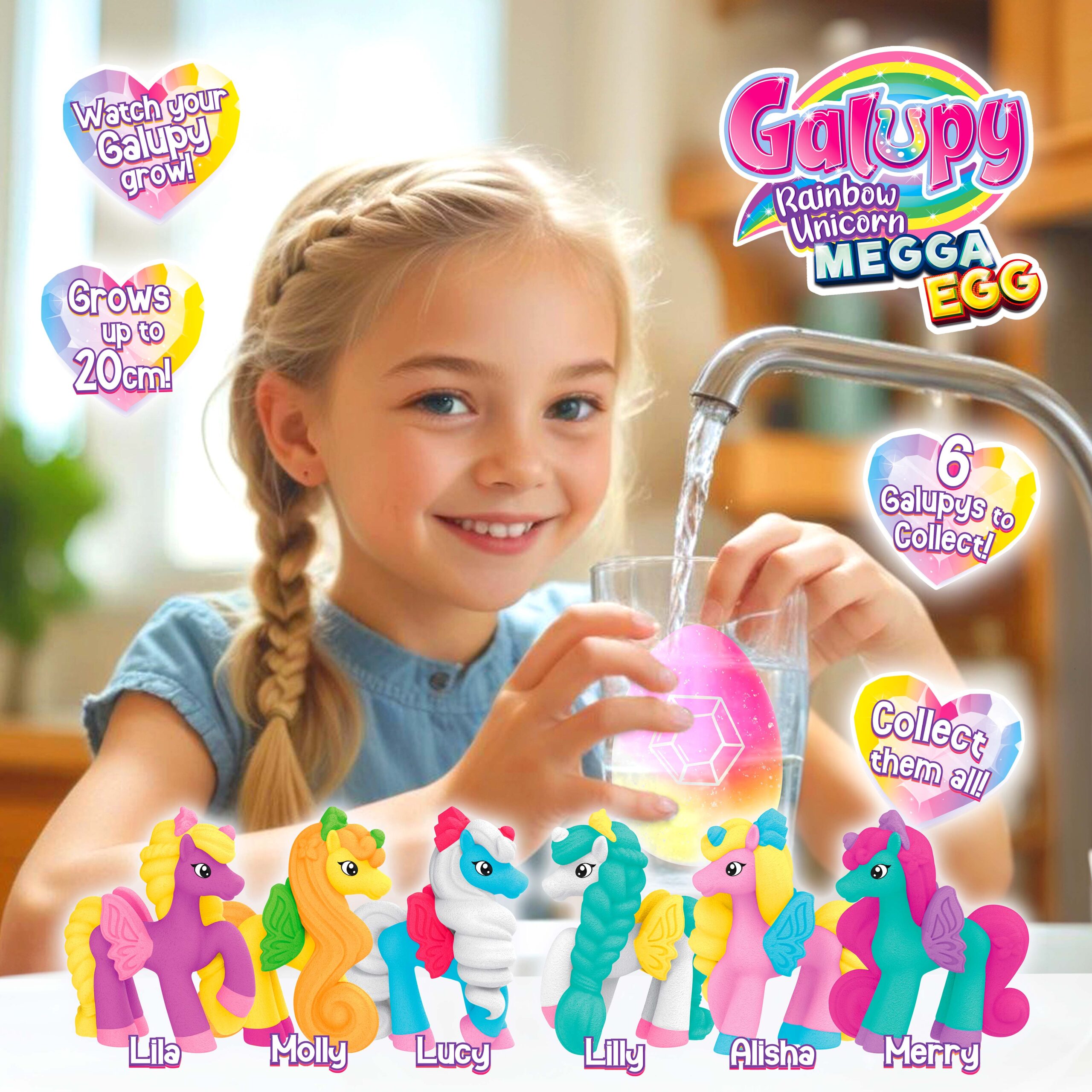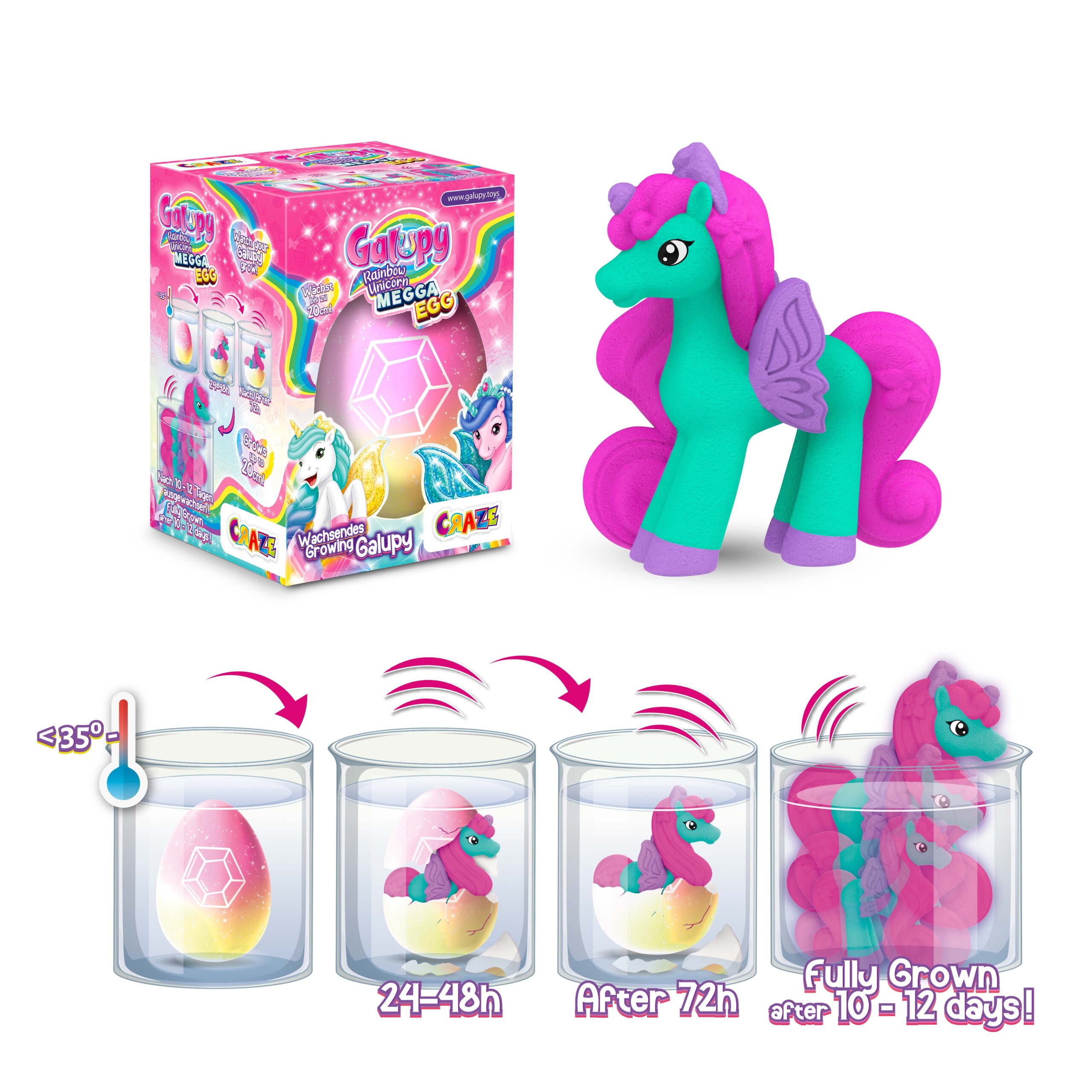 But that’s not all: The tiny Galupy Rainbow Unicorn continues to grow in water for a few days after hatching, and it can grow up to 20 cm! Simply MEGGA cool for all fans of Galupy!