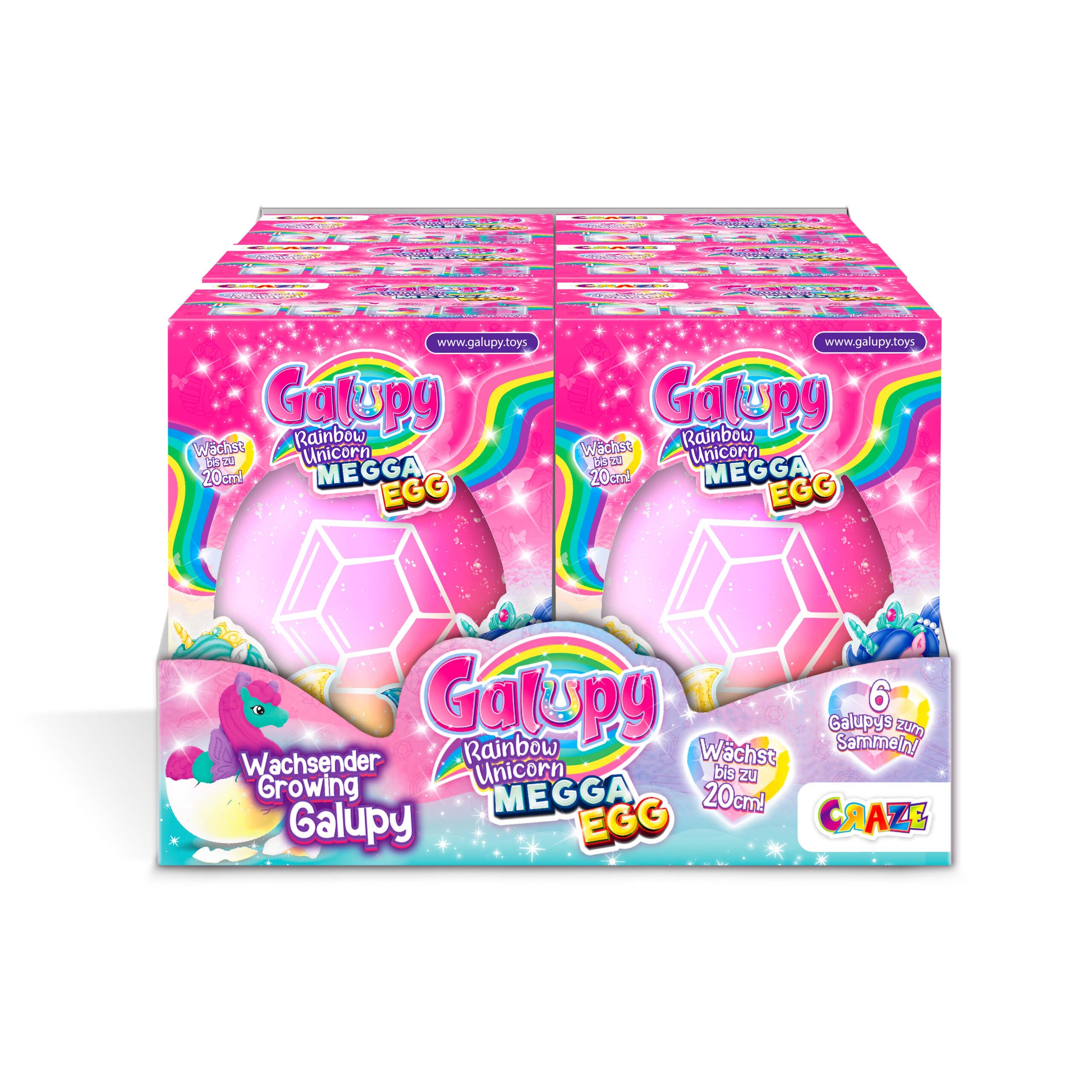 Have you ever seen a Galupy come into the world? With the CRAZE MEGGA EGG Galupy Rainbow Unicorn you can watch one of 6 different cool Galupy figures hatch and grow up!