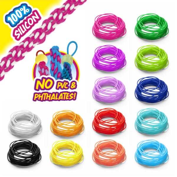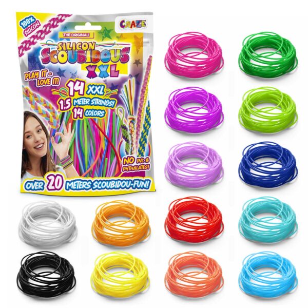 Unleash your creativity with the SILICONE SCOUBIDOUS – Bag XXL! This incredible pack includes 100% silicone Scoubidous in an XXL format, featuring 14 pieces of 150 cm each – that’s over 21 meters of Scoubidou fun! Inside, you’ll find 14 vibrant colors of Scoubidous, perfect for crafting trendy bracelets that stand out.